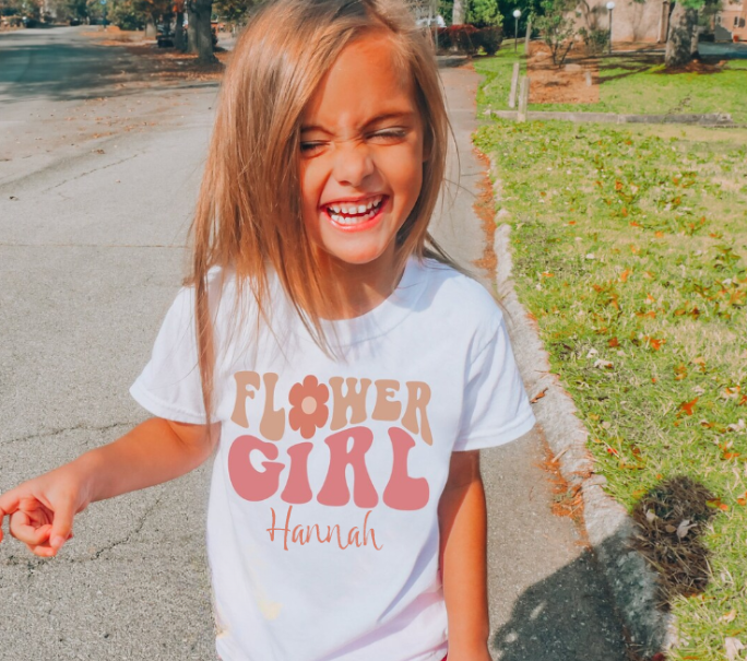 Make your flower girl feel extra special with a personalized Flower Girl T-Shirt featuring her name. This adorable tee is the perfect little gift for your petal girl—something she’ll love wearing on the big day and long after the petals are tossed. Thoughtfully designed for comfort and cuteness, it’s a fun way to include her in the celebration and create a keepsake she’ll treasure. Perfect for wedding day prep, photos, or a special surprise just for her.