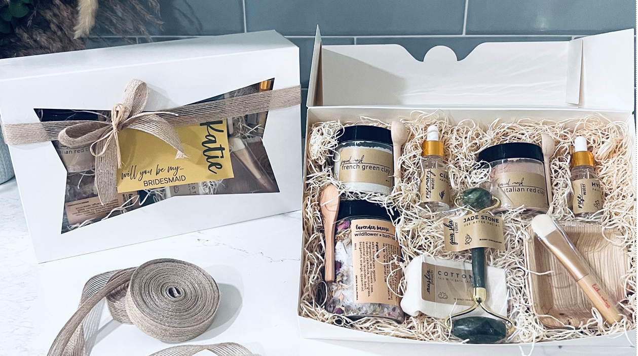 The Signature Spa Set is the perfect way to thank your bridal party with a moment of calm amid the excitement. Designed to help her feel relaxed and restored, this luxurious set lets her unwind so she can fully enjoy — and support you through — every wedding festivity. Each gift is thoughtfully curated with premium ingredients, including Italian red clay, rose water, wildflower Himalayan salt, a gua sha stone roller, bamboo mixing trays, and wooden spoons, creating a spa-like experience she’ll truly cherish.