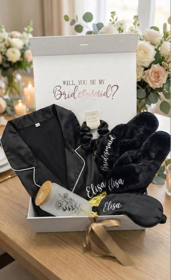 This personalized gift box is not only practical but also thoughtful and chic, ensuring your bridal party feels loved, looks fabulous, and is ready to celebrate your special day in style. Make your proposal unforgettable with this perfect set of bridal party essentials!