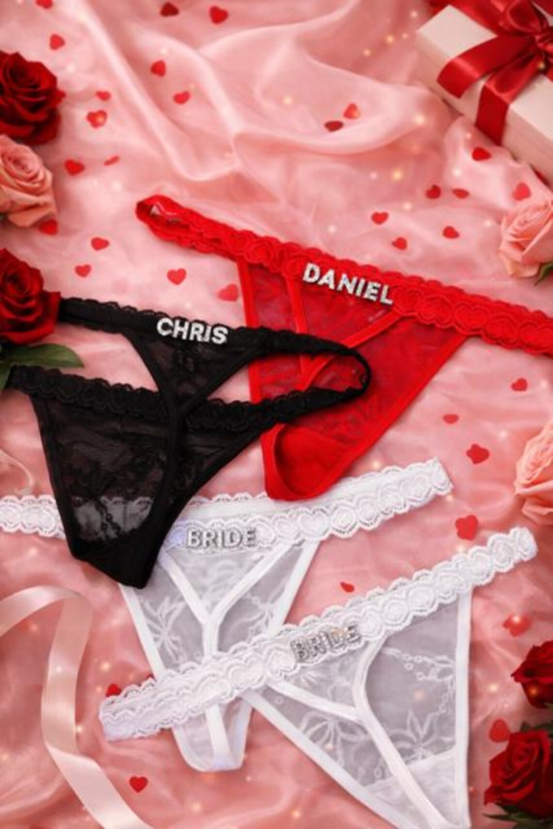 Make her/your bridal shower (honeymoon) unforgettable with a personalized thong! Add your husband’s name for a cheeky, sexy, and funny gift he’ll never forget. Perfect for anniversaries or romantic surprises.