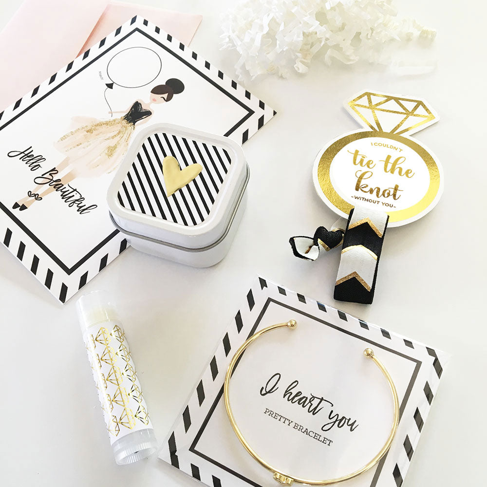 Something old, something new, something borrowed, and now something blue. This stylish bridesmaid proposal gift box is full of her soon-to-be favorite things that will guarantee you a "YES!" It can also be used as a thank you gift during the wedding weekend. Wedding Favors are another token of appreciation for your guests, be sure to order in time.