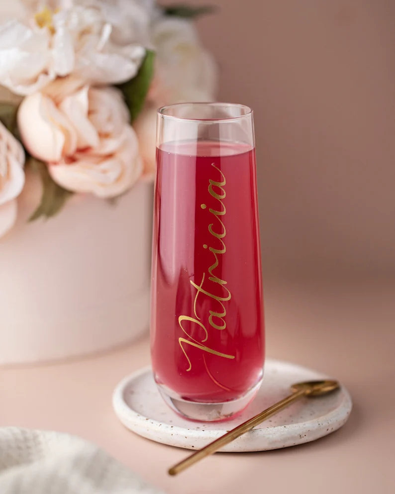 You’re all busy, preparing for the big day ahead. You’re getting your makeup done. Your maid of honor is getting her hair done. Your other bridesmaids are patiently awaiting their turns, relaxing in their robes. You are all sipping on mimosas. Now, imagine you are all sipping on mimosas out of stemless champagne flutes. Even better, they are christened with your names emblazoned on the front, in sophisticated colors. You’ve been wanting to find the perfect way to show your appreciation to your bridesmaids for their roles on your special day. With the Bring Out the Bubbly Stemless Flutes, thank you never tasted so crisp.