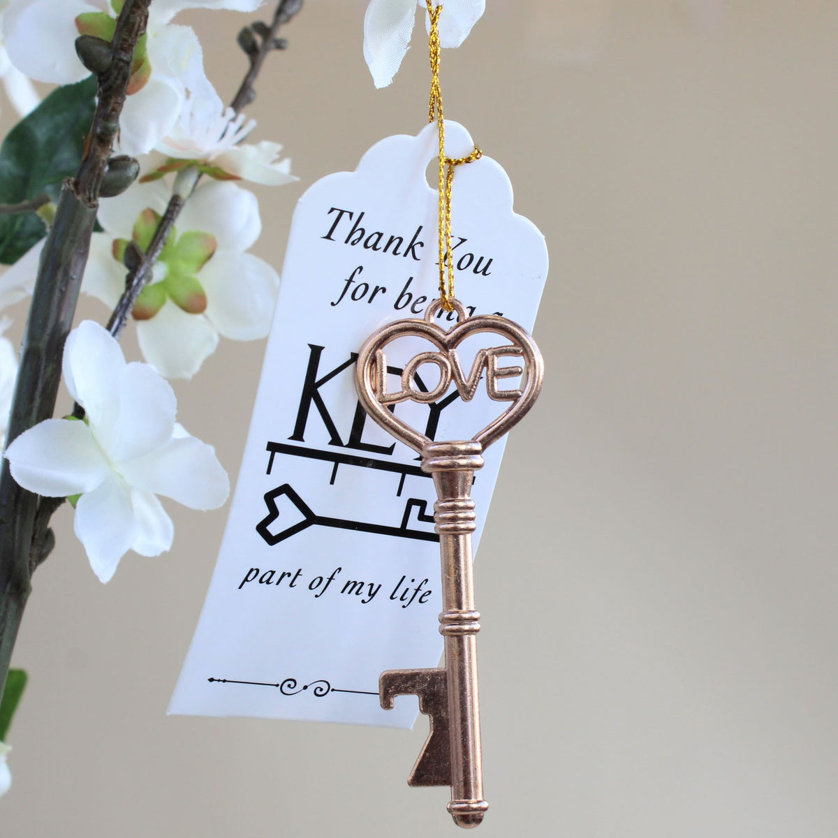 So beautifully practical! It may be the key to your heart, but to your grateful guests, this quaint bottle opener is their good old key to cold, uncapped refreshment, wherever they may be--perfect asbridal shower favors or wedding favors.
