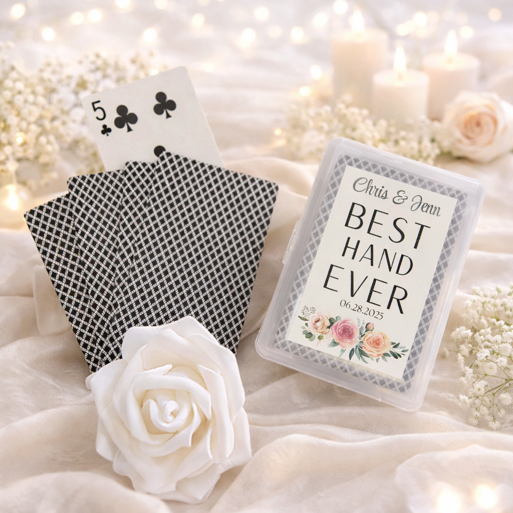 Give your guests the winning hand when you offer them a fabulous set of playing cards as a favor at your event. Whether it's for your special day, bridal shower, or bachelorette, these unique playing cards are a fun and unique gift for all your guests!
