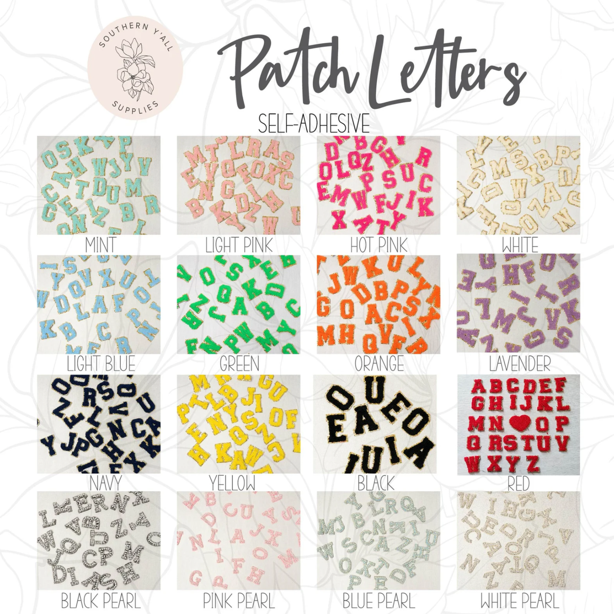 • Chenille patches are 2.5" tall and pearl patches are 1.75" tall
