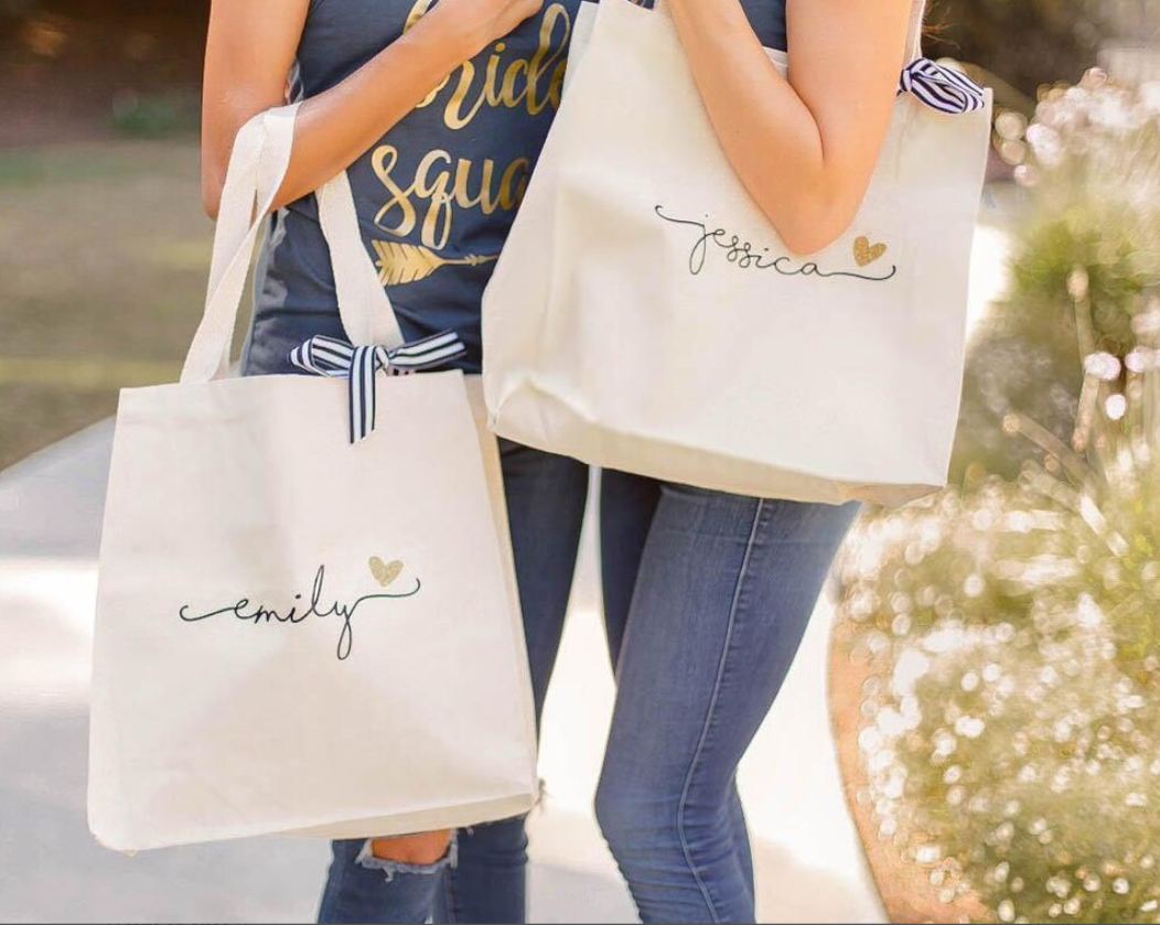 Ask your girls in style with a personalized bridesmaid proposal tote bag they’ll adore. This custom canvas tote makes the perfect “Will You Be My Bridesmaid?” gift, ideal for filling with candles, champagne, and sweet surprises. A meaningful and reusable bridesmaid proposal gift that doubles as a wedding day bag. One of the most popular bridesmaid proposal ideas for modern brides.