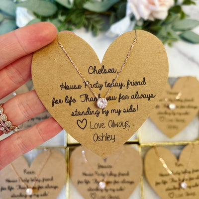 Our dainty Cubic Zircon Necklace is part of our Bridal collection and is available in Rose Gold or Silver! This is the perfect gift to thank each of your girls for being part of your special day! I can personalize the card any way you would like, there is a box provided at the check out window that you can type out what you would like the card to say (if different than what is pictured) and add the names for the cards as well! Of course this card can be adjusted to say (Maid of Honor, Matron of Honor or Bridesmaid!