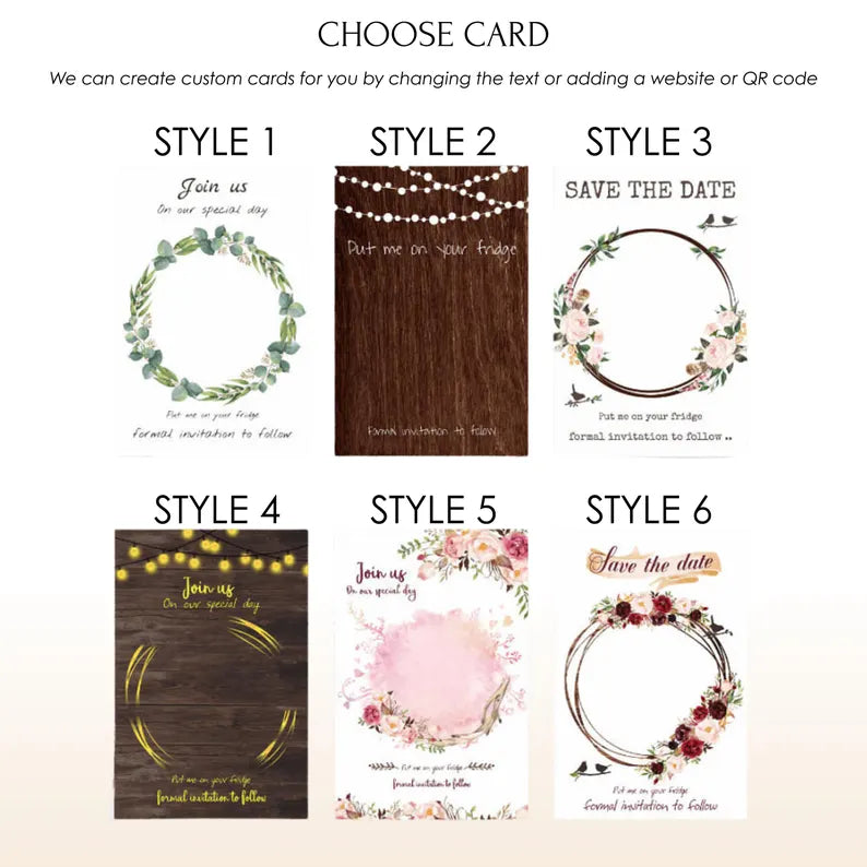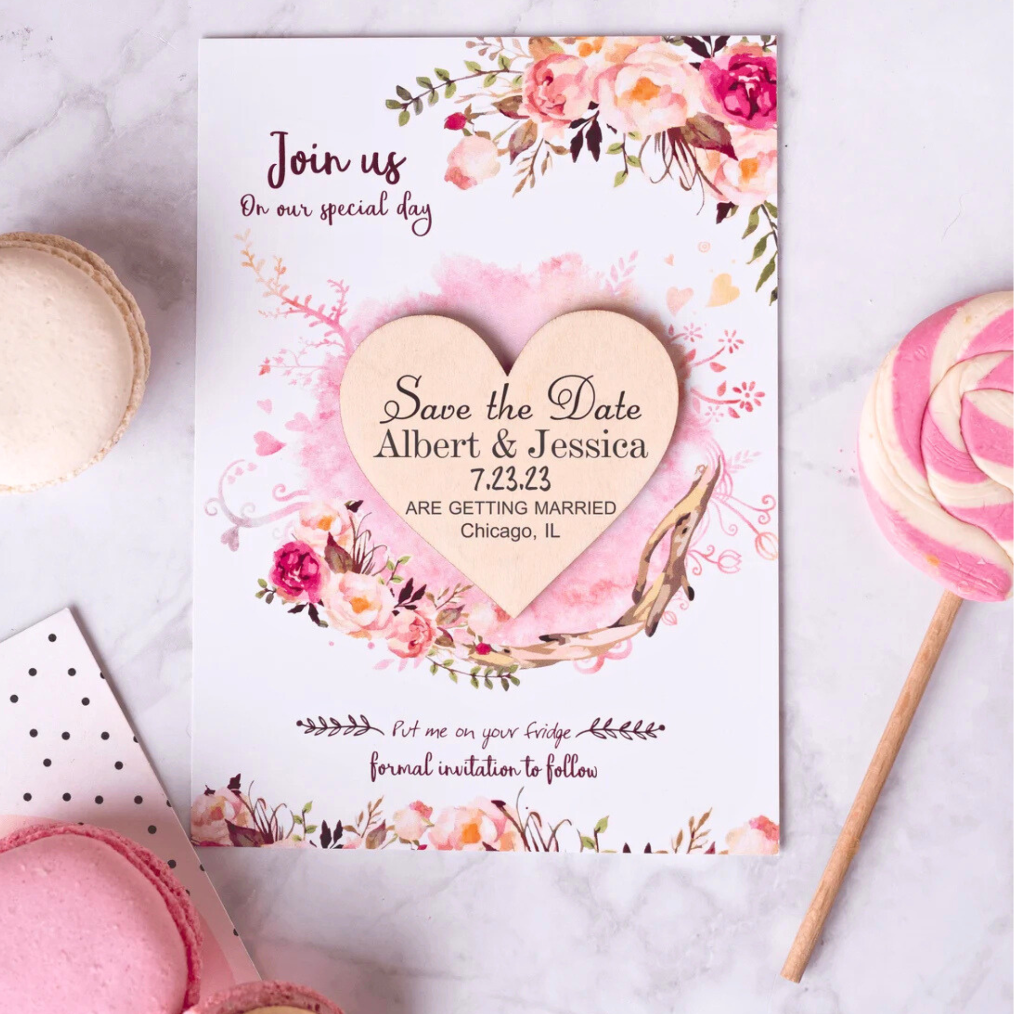 Make your wedding announcement unforgettable with our Save The Date Magnets and personalized wedding invitations. Choose from a variety of designs, including Save the Date heart magnets or heart magnet options for a charming touch. Our magnet save the date designs also double as beautiful wedding favors, ensuring your guests have a lasting reminder of your special day.