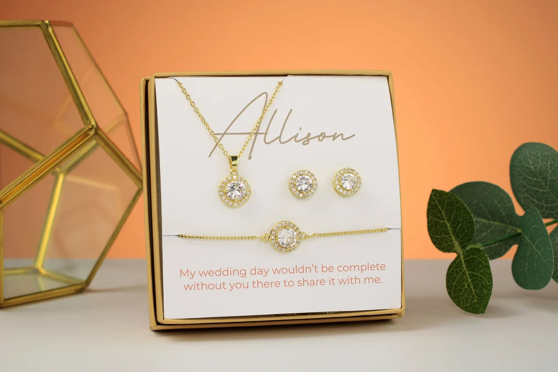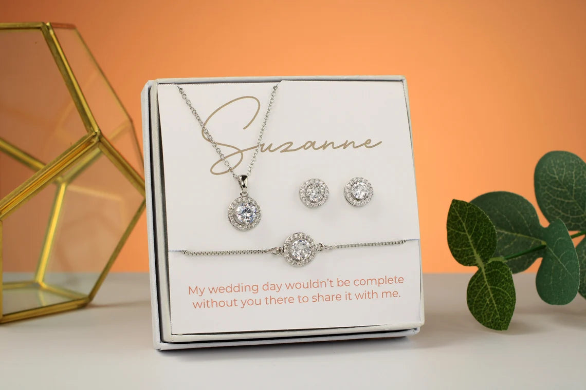 This 3 piece high end jewelry gift set comes beautifully packaged, making it the perfect gift for your bridesmaids. It is also an ideal keepsake for them to cherish long after the wedding day has passed.