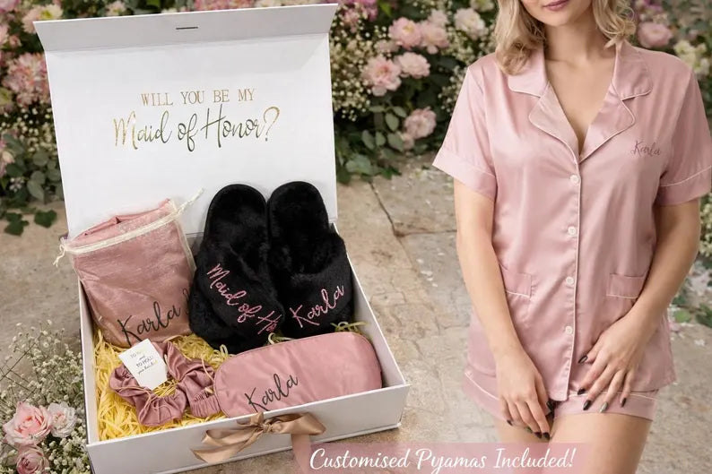 Gift your bridal party something truly unforgettable with this stunning Luxury Proposal Gift Box, thoughtfully curated to make her feel pampered, appreciated, and celebrated. Designed with elegance and comfort in mind, this beautiful set is the perfect way to ask, “Will you be my bridesmaid?” in style.